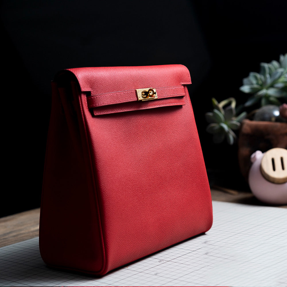 Inspired by Kelly Ado Bag – We've started developing the Kelly ado inspired DIY leather bag kit since 2023 for a devoted client. Despite its intricate design and challenges in hardware supply, it hadn't been released until now. After a year of preparation, two sizes of leather bag patterns are finally available. The larger one features canvas and leather, while the smaller features all leather. The tutorial is based on crafting the smaller size.