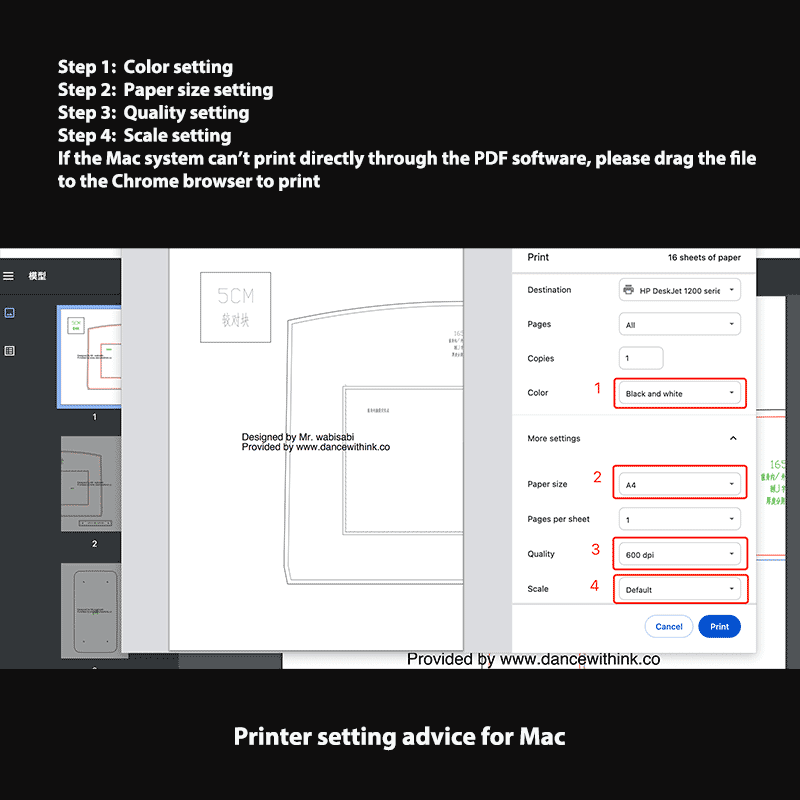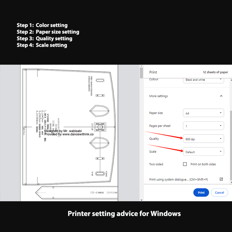 - Printing Format A4 format (suitable for home printers)and A2 format will be sent automatically. US letter size format is available upon demand.