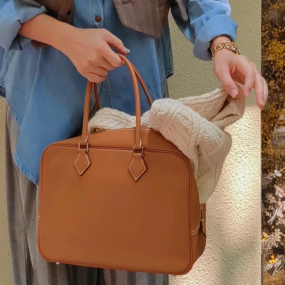 Inspired by Plume 28 – leather bag patterns. In 2024, Plume will make a comeback with a complete design devoid of conspicuous logo elements, presenting a subtle and textured aesthetic. We suggest using the Swift leather as the original design when producing this bag.